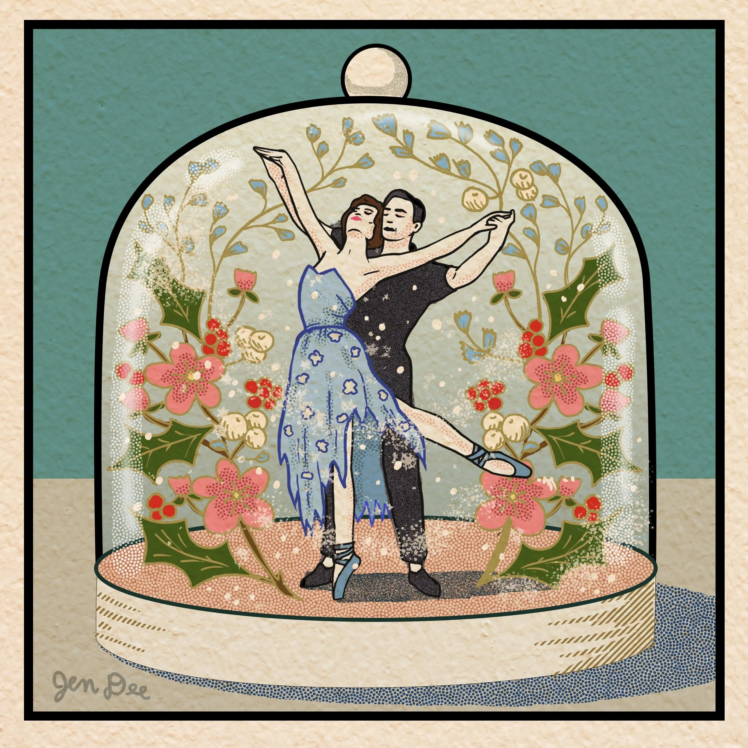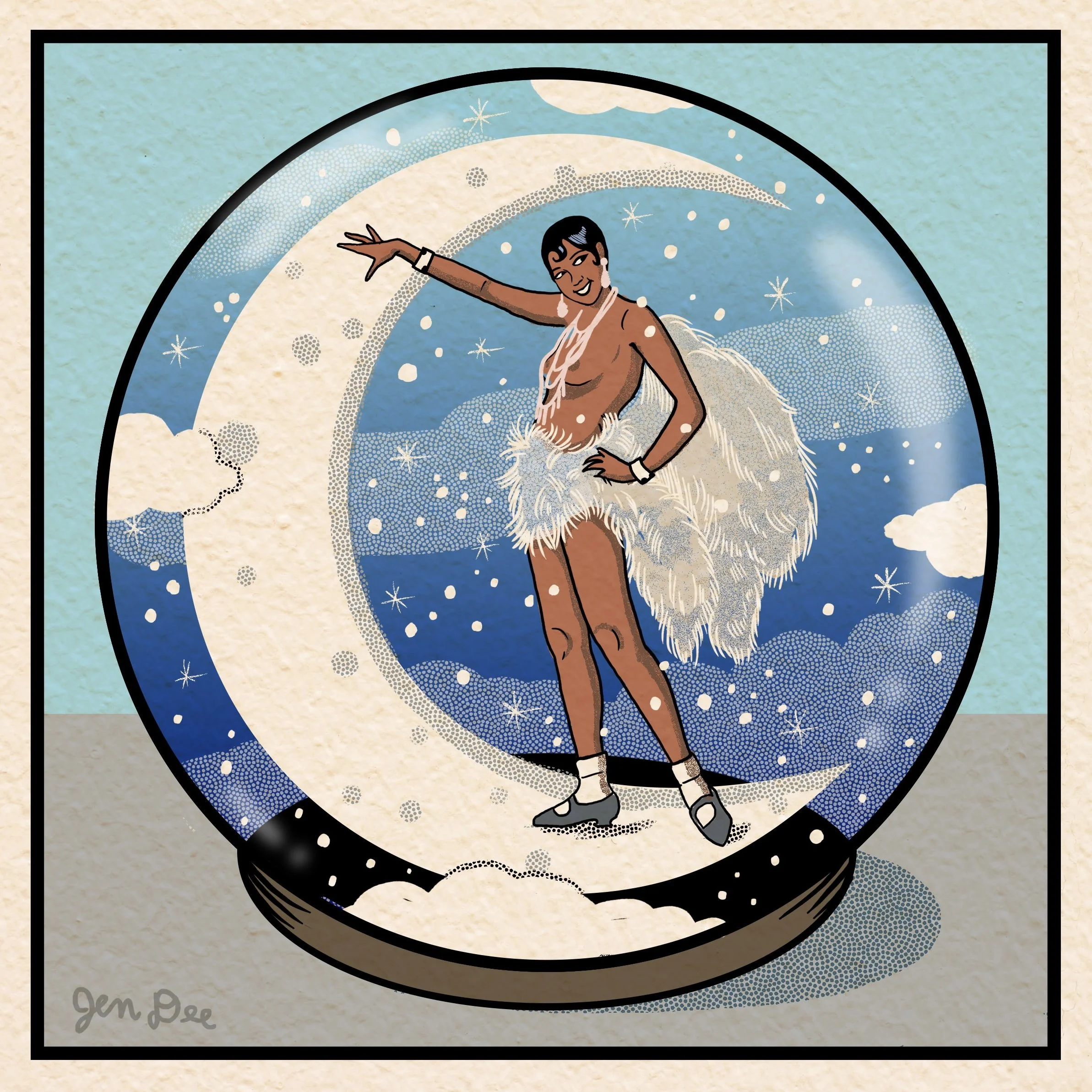 What if iconic American dancers were shrunk down and placed inside a snow globe? These illustrations were meant to create a sense of wonder and a have a cozy winter retro vibe. Dancers are Josephine Baker, Fred Astaire and Ginger Rogers, Gene Kelly and Leslie Caron.